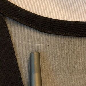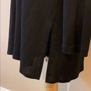 Classy black dress with mesh detail at chest and side slits . Has some signs of wear, as pictured. Still a fabulous frock!!