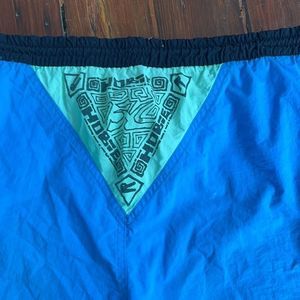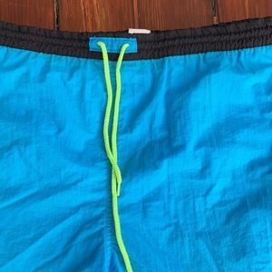 Vintage Hobie lined swim trunks; no elastic left in waistband but does have a drawstring; no size tag; SEE MEASUREMENTS