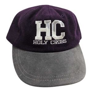 Vintage Holy Cross University Square Leather Strapback Wool Hat Cap Dad