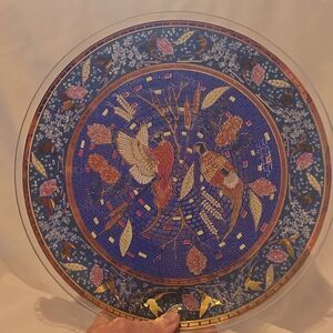 Stunning decorative mosaic plate featuring intricate blue and gold designs with Phesants! Perfect for display. Excellent Cond!