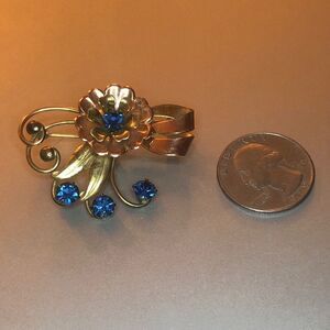 Vintage IH Gold Tone Floral Flower Brooch /pin 1/20 10K gold filled Blue Gems