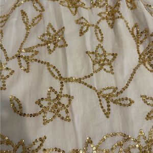 Vintage but looks brand new. Beautiful gold sequins, fully lined and gold chain halter strap. Size 2. This sleeveless camisole from INC International Concepts features a luxurious cream base adorned with shimmering gold sequins. The embellished design adds a touch of glamour, making it perfect for elevating any ensemble. Its lightweight and airy fabric ensures comfort and style for any occasion.