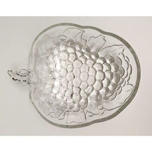 Vintage INDIANA GLASS 10" x 13" Clear Grape & Fruit Shape Bowl Bubble Design USA
