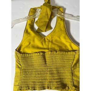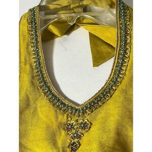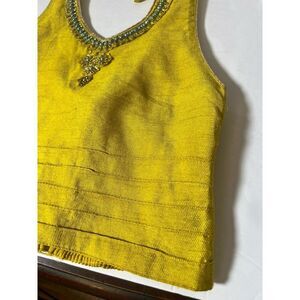 Vintage Indian Beaded Yellow Iridescent Halter Top Boho Festival Size XXS. K