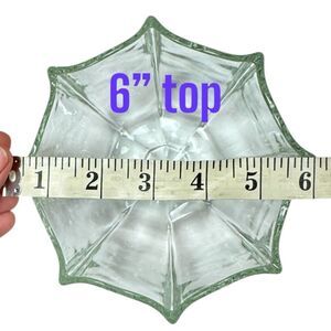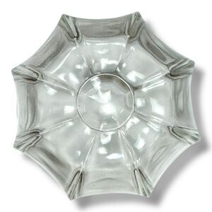 Beautiful clear glass bowl with a unique scalloped design. Perfect for decor or serving. 3” bottom, slants up ward 6” at the top