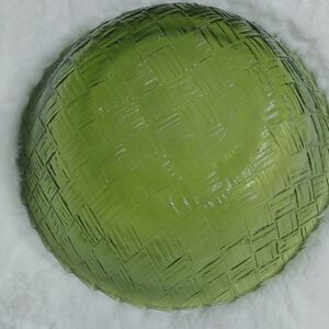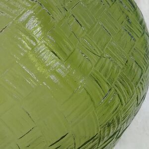 Vintage Indiana Glass Weavetex Glassware Avocado Green Basket Weave Bowl 9in dia
