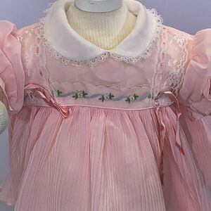 Vintage Infant Baby Doll Dress 6-9m Pink Lace Embroidery Accordion Pleats