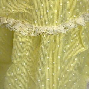 Vintage Infant Baby Doll Circle Dress 6-12m Yellow Polka Dot Ruffle Lace Bloomers