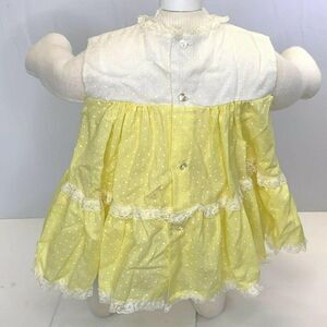Vintage Infant Baby Doll Dress 6-12m Yellow Polka