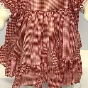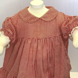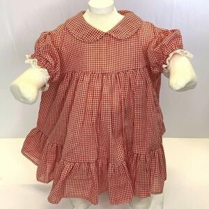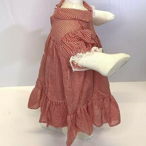 Vintage Infant Babydoll Dress 18m Red Gingham Bloomers Collar Ruffles Buttons