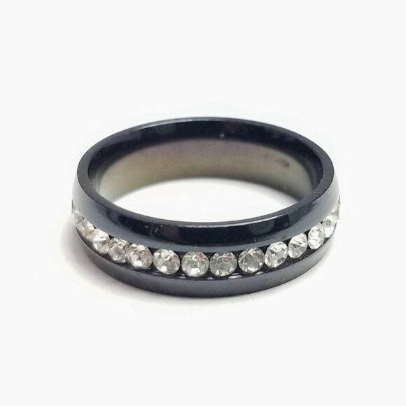 Vintage Inlaid Rhinestone Band Ring, Size 8, Estate