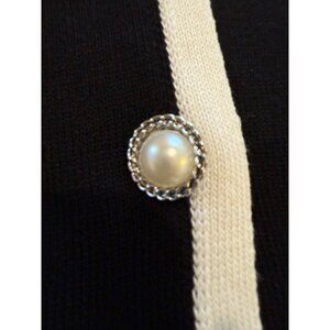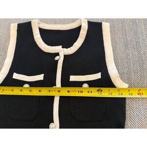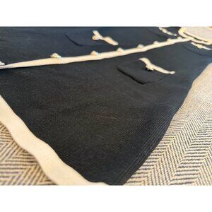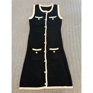 Vintage-Inspired Black Sleeveless Knit Dress With Pearl Buttons & Cream Trim Mid