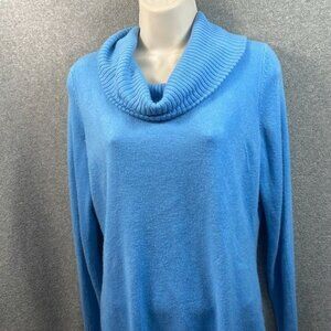vintage sweater, blue pullover, knit top, cowl neck, vintage fashion, cozy knitwear, blue sweater, retro style, classic knit, timeless fashion, women's sweater, medium size, ribbed sweater