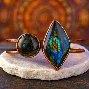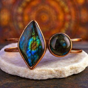 🆕️Vintage-Inspired Boho-Chic Labradorite Antique Bronze Copper Cuff Bracelet 🌿