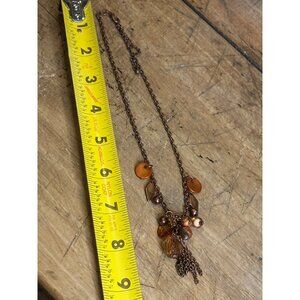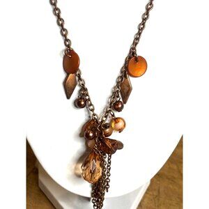 This necklace blends a bronze-tone chain with an array of beads and charms, offering a sophisticated accessory for polished and versatile styling.