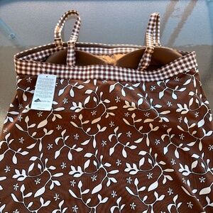 Step into effortless charm with this adorable brown mini dress, featuring a playful white floral vine pattern that dances across the fabric. The sweet gingham check accents at the bustline and on the adjustable spaghetti straps add the perfect vintage-inspired touch, blending cottagecore aesthetics with modern comfort.
