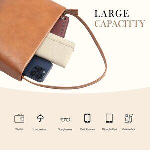 Features: This stylish shoulder bag features a sleek faux leather exterior with a classic silhouette, perfect for dressing up or adding a chic touch to casual outfits. The zipper closure keeps your belongings secure, and the spacious interior with a zip pocket and flat pocket makes it practical for daily essentials.