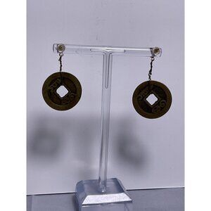 Vintage-Inspired Chinese Coin Dangle Earrings With Brass Finish