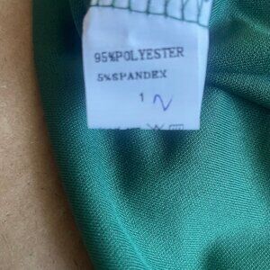 Delightful retro-style dress featuring a rich emerald green base with sophisticated camel-colored contrasting details. This piece captures the charm of vintage fashion with modern comfort and wearability.