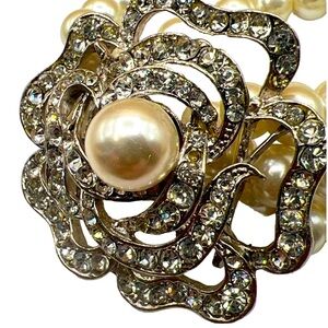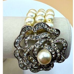 Vintage-Inspired Faux Pearl & Rhinestone Flower Bracelet B1