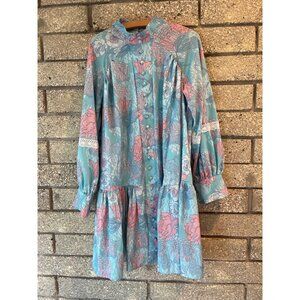 Step into a dreamscape of pastel blooms and delicate lace as this vintage-inspired dress tells a story of romantic elegance and timeless charm.
