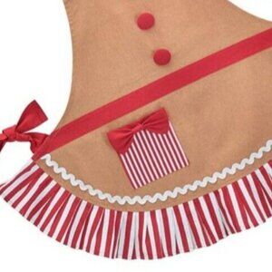 In a whimsical dance of colors that echo holiday cheer, this gingerbread apron wraps you in a nostalgic embrace. The playful stripes and intricate bow accents tell a story of festive kitchen adventures, where each tie of the apron invites culinary creativity and joyful baking escapades.