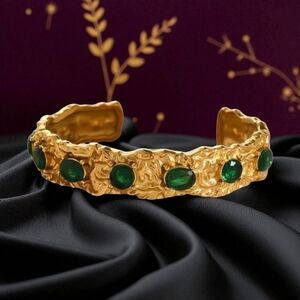 ποΈVintage-Inspired Gold Cuff Bracelet | Green Zirconia Gems | 18K Gold Plated β¨