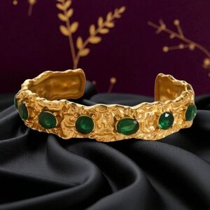 ποΈVintage-Inspired Gold Cuff Bracelet | Green Zirconia Gems | 18K Gold Plated β¨