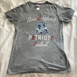 Show off your team spirit with this vintage-style Junk Food Clothing New England Patriots football t-shirt. Features a soft, worn-in heather gray fabric with a classic v-neckline and distressed retro Patriots logo graphic. Lightweight and comfy, this tee is perfect for tailgating, lounging, or layering.