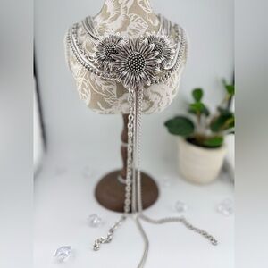 #StatementNecklace #ChokerStyle #VintageInspired #SunflowerJewelry #LayeredNecklace #BoldAccessories #RunwayStyle #UniqueFind #FestivalFashion #DramaticLook