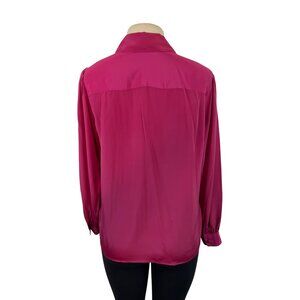 Elegant blouse with a vibrant fuchsia hue, complemented by a contrasting black bow tie neck. Ideal for adding a classic yet bold touch to your wardrobe.