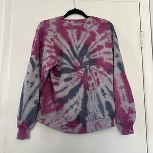 Super cute and cozy crewneck featuring classic Mickey Mouse on a vibrant pink & blue tie-dye background. Perfect for Disney lovers or anyone looking to add some fun to their casual wardrobe!