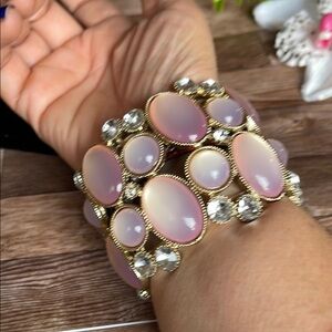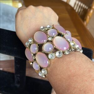 Vintage-Inspired Pink and Gold Bracelet with Iridescent Stones