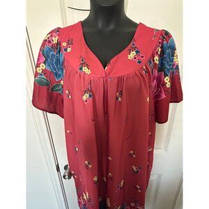 Vintage-Inspired Red Floral Mexican-Style Dress With Short Sleeves & V-Neckline