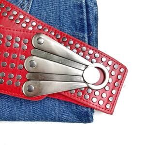 Vintage-Inspired Red Wide Faux Leather Waist Belt | Glam Punk Rockstar Edit NEW