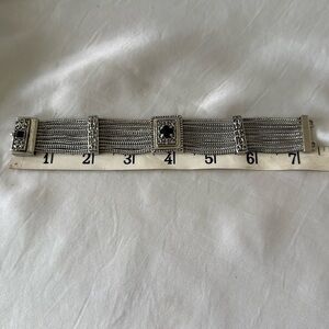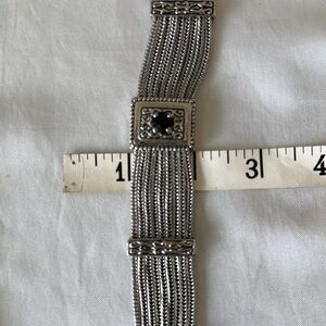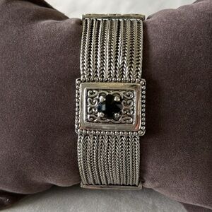 Vintage-Inspired Silver 8 Strand Mesh Bracelet Black Stone Accents Magnetic