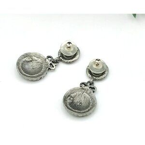 These earrings feature a timeless design with silver-tone detailing and blue swirl centers. An elegant accessory for elevating your wardrobe.