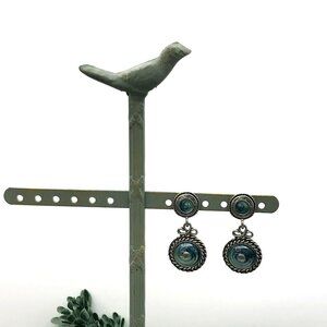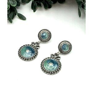 Vintage-Inspired Silver Drop Earrings With Blue Enamel Swirl Accents
