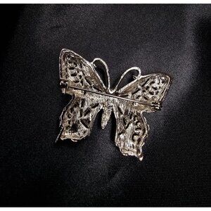 Vintage-Inspired Silver-Tone Butterfly Brooch With Rhinestone Accents Elegant
