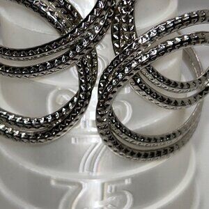 This silver-tone bracelet boasts a vintage-inspired openwork design with a hinged closure, offering both style and ease of wear for dressy occasions.