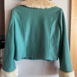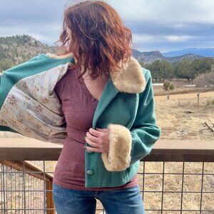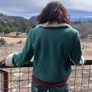Vintage-Inspired Teal Wool Cropped Jacket with Faux Fur Trim – Collectif Retro S