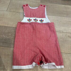 Vintage-Inspired Toddler Boys Red Gingham Checked Romper Sz 2 Hand-Smocked Ships
