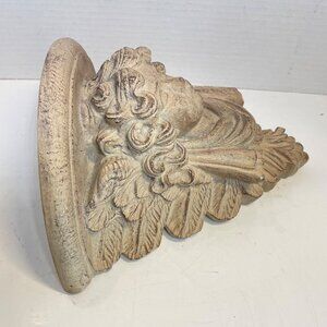 Vintage-Inspired Wall-Mounted Decorative Plaster Shelf With Sculpted Face Motif