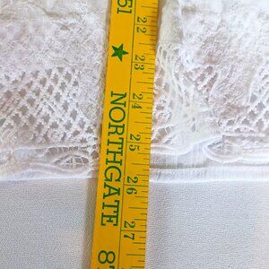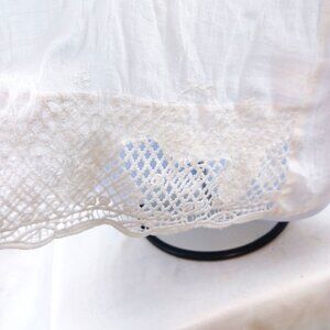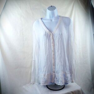 Vintage-Inspired White Long-Sleeve Button-Up Blouse With Crochet Lace Hem & Roll