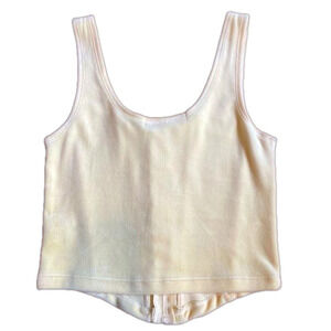 Structured and form fitting yellow crop top corset. Featuring a soft, pastel yellow hue. The front zipper adds both style and convenience, making it easy to wear.