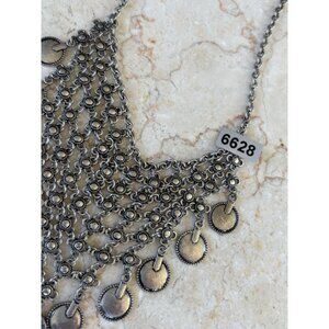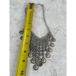 Vintage-Inspired tribal Silver-Tone Bib Necklace With Layered Coin Pendant Desig