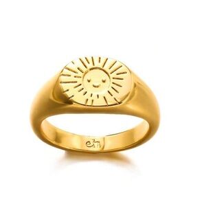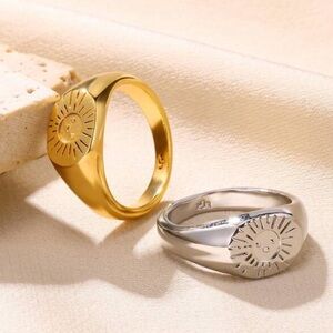 Vintage-Inspiring Stainless Steel 18k REAL Gold Plated Sun Ray Round Ring