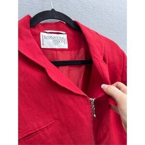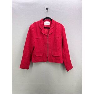 Vintage International Scene Womens Red Linen Zip Front Blazer Jacket Size 12