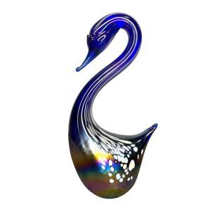 Beautiful vintage iridescent cobalt blue hand blown glass swans