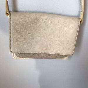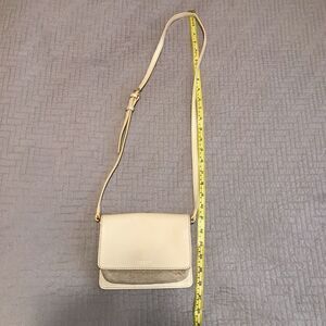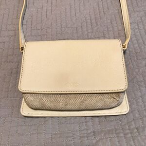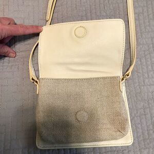 Vintage Isaac Mizrahi Small Crossbody Pebbled Leather and Burlap Purse. Cream